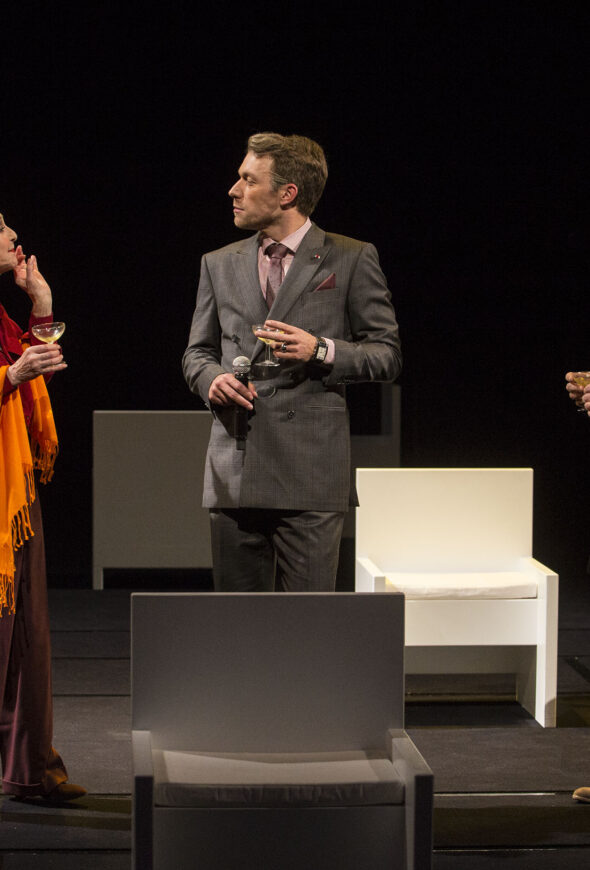 Quand une pièce contemporaine de cette nature est représentée sur scène pour la première fois, il convient avant tout qu’elle soit entendue, dans toute sa nouveauté. De ce point de vue, Christian Schiaretti remplit la mission. Sa mise en scène, claire, lisible, permet à chaque personnage d’exister. Des chaises blanches sur le plateau, comme les pions d’un échiquier, des panneaux, transparents ou de couleurs, qui dessinent les espaces : le décor aussi est adéquat. Le plus gros morceau, évidemment, c’est la distribution.